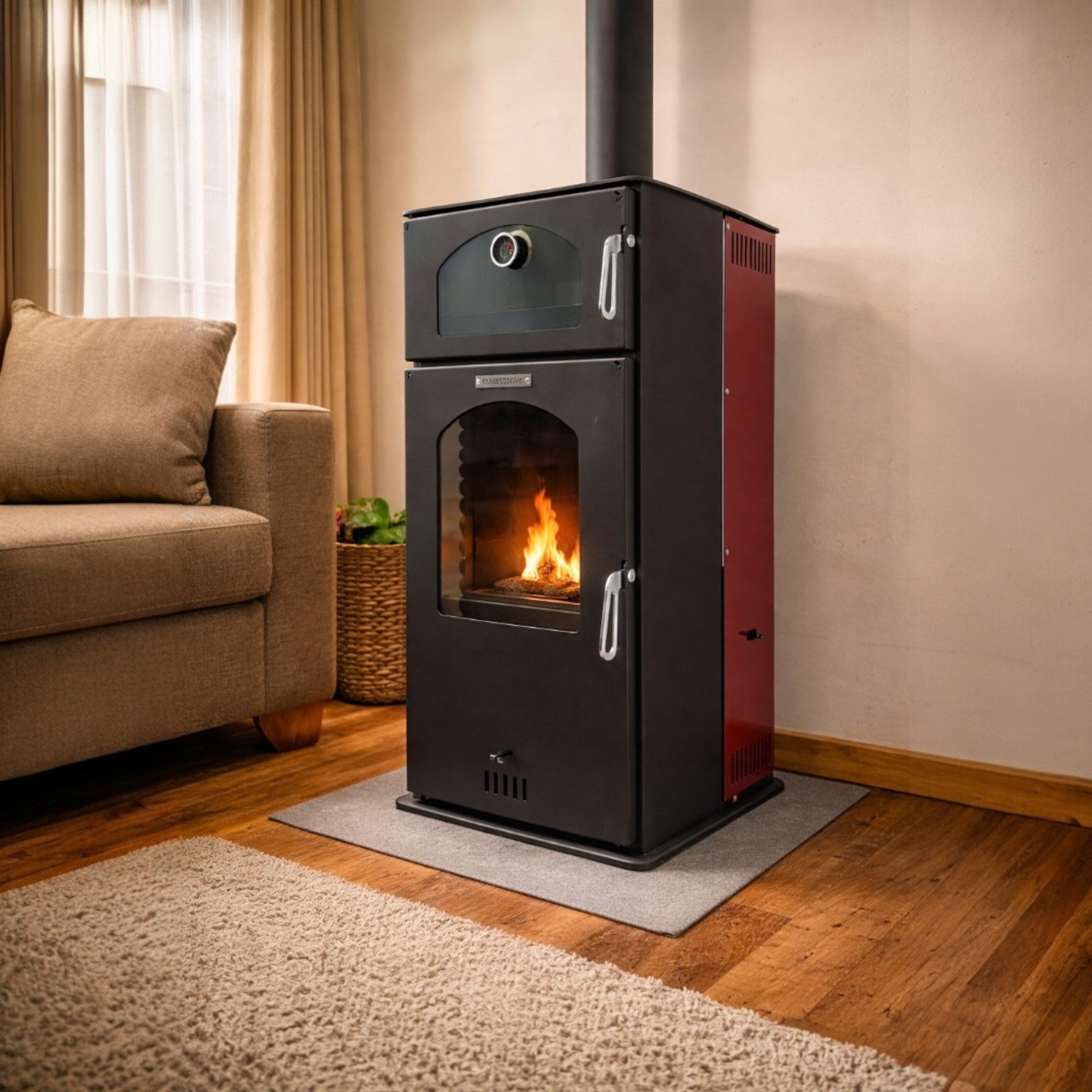 FS-292 Peletmix Large Oven Stove - Burgundy Finish, Single Glass Door, Eco-Friendly HeatingStock Code : FS-292