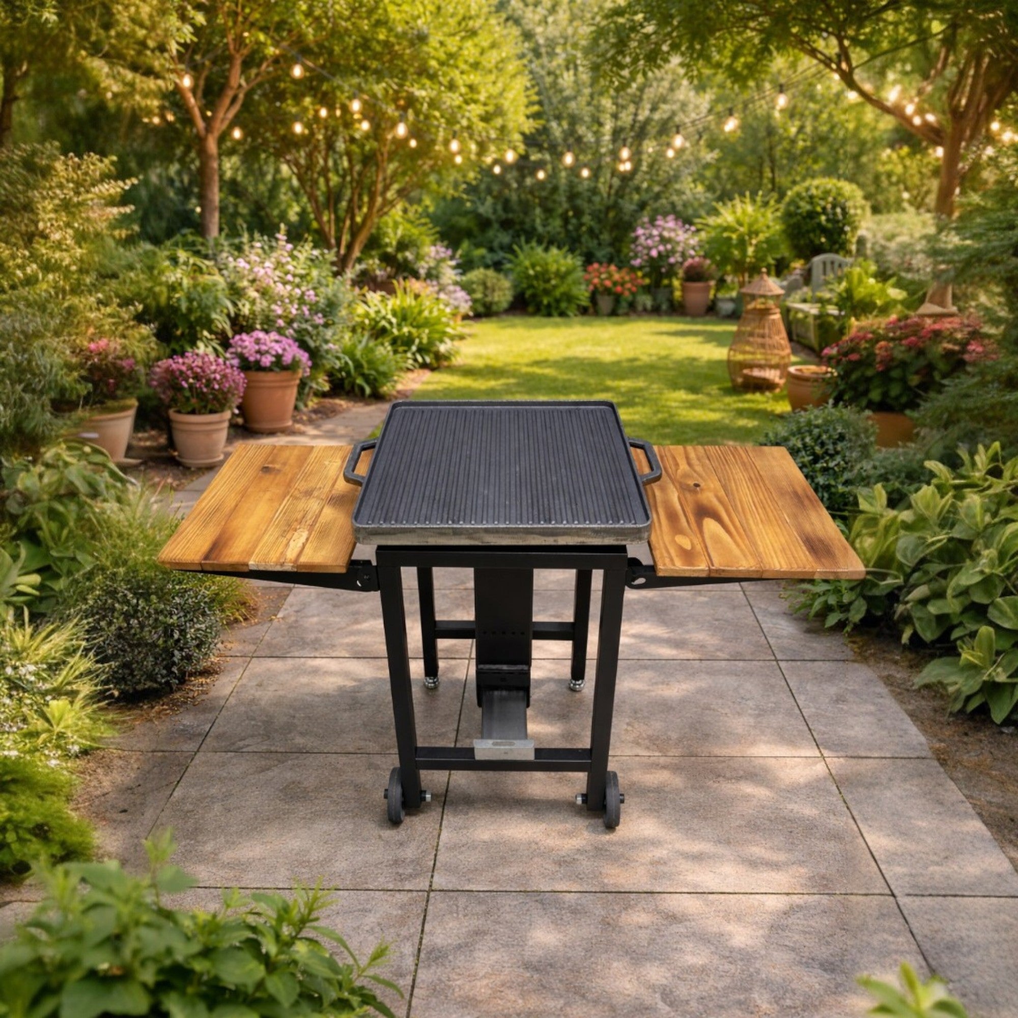 FS-506 Dual Fuel Garden BBQ – Wood & Pellet Burning Outdoor Grill with Side TablesStock Code : FS-506