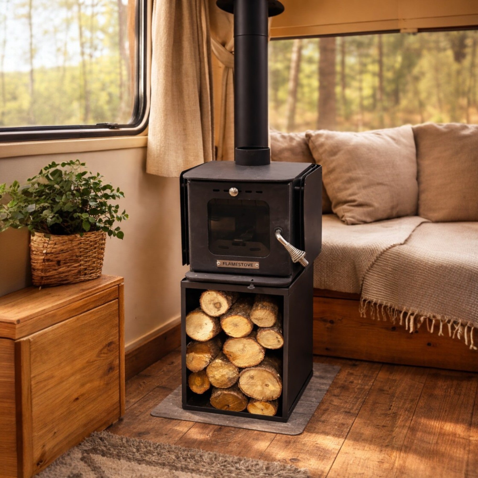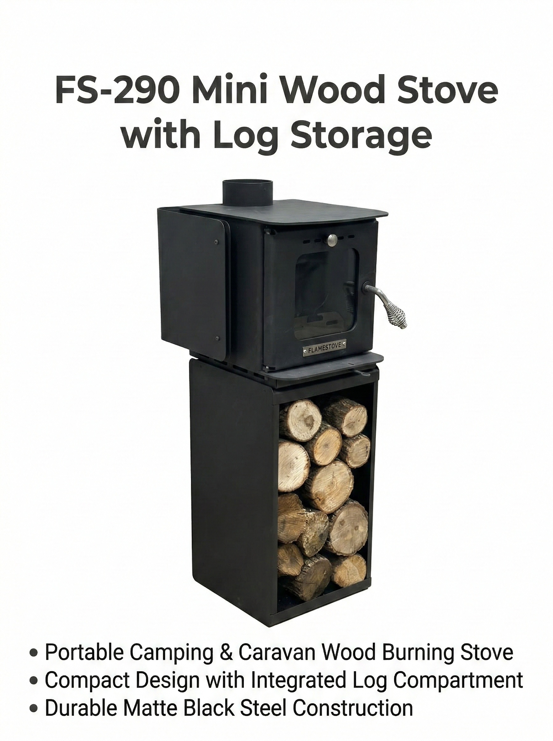 FS-290 Mini Wood Stove with Log Storage | Portable Camping & Caravan Wood Burning StoveStock Code : FS-290